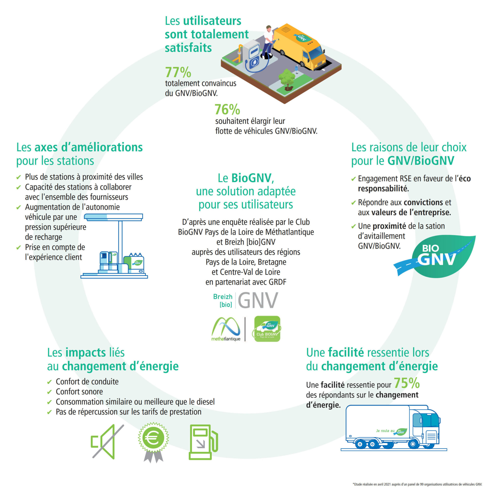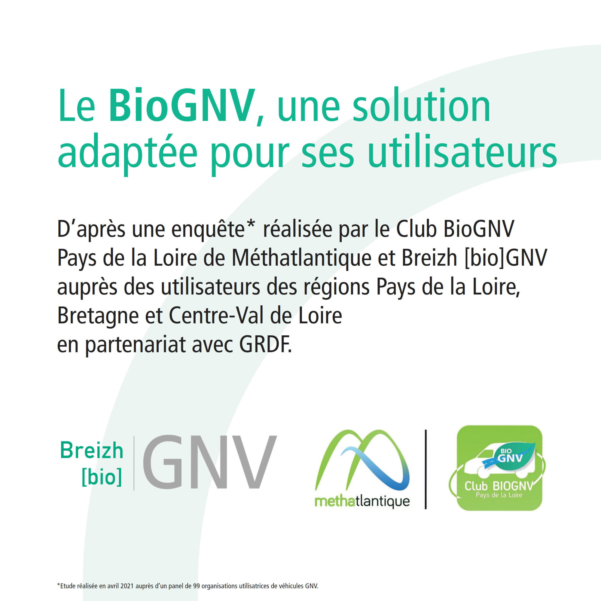 Le collectif Breizh [Bio]GNV aux côtés du Club BioGNV Pays de la Loire de Méthatlantique, en partenariat avec GRDF, ont réalisé en avril dernier une enquête de satisfaction auprès des professionnels possédant des véhicules roulant au gaz naturel véhicule (GNV) et sa version renouvelable, le bioGNV, dans les régions Bretagne, Pays de la Loire et Centre-Val de Loire. Au travers du retour d’expérience des 42 entreprises répondantes, le GNV/BioGNV ressort conforté comme une solution performante et pertinente.