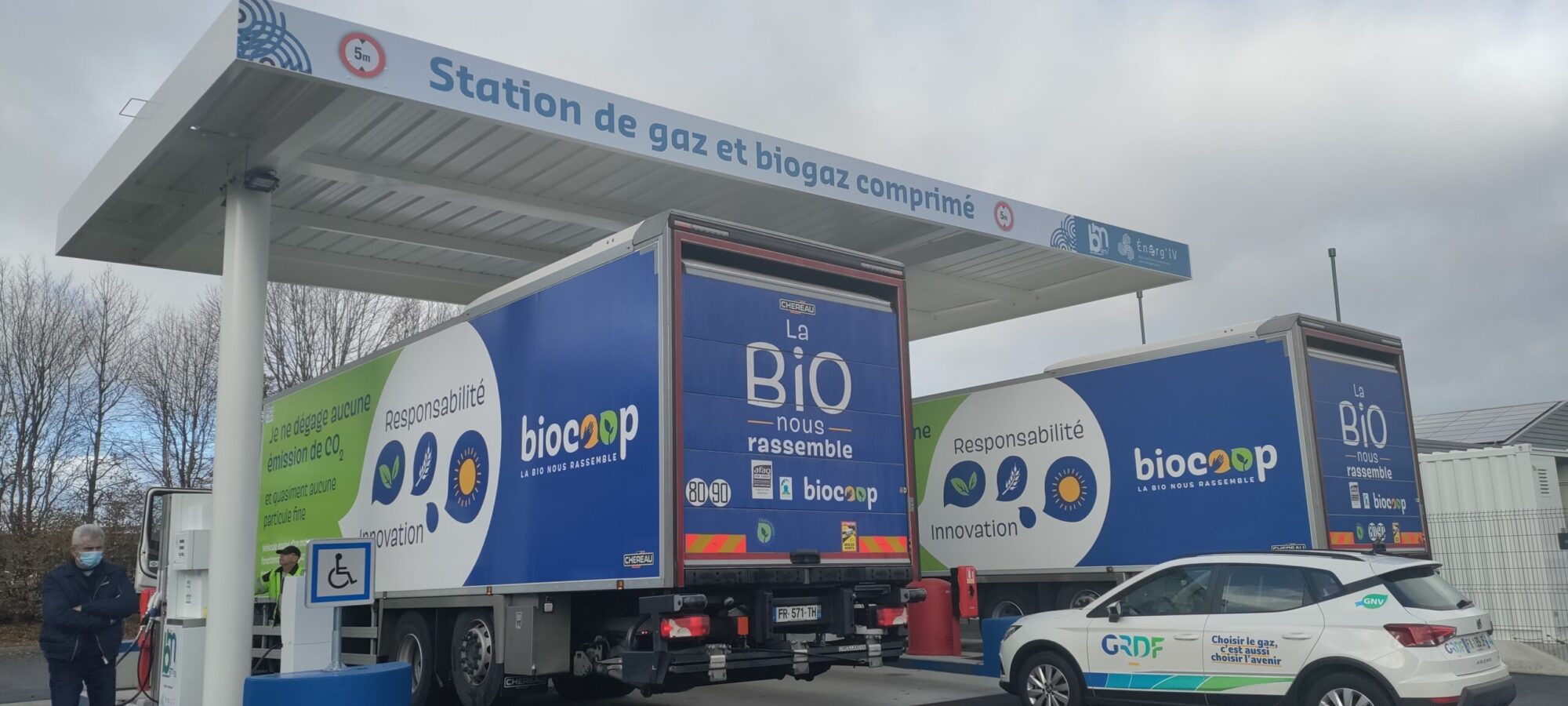 Ces deux projets ont été rendu possibles grâce à un partenariat étroit entre Energ’iV et l’entreprise Biocoop, dont la plateforme régionale est située à Tinténiac. Désormais, une partie des magasins de l’enseigne seront approvisionnés par des camions roulant au bioGNV grâce à la station d’avitaillement construite en face du bâtiment. La station, accessible 24h/24 et 7jrs/7, est ouverte à tous et propose du GNC et du bioGNC.