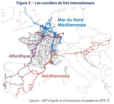 Créés par un règlement européen, les corridors de fret internationaux visent à faciliter et développer les circulations ferroviaires internationales de fret. En France, l’infrastructure est constituée de 6 500 km de lignes (24 % du réseau ferré national).