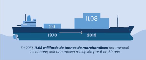 Les émissions de gaz à effet de serre (GES) de ce secteur représentent aujourd’hui 3% des émissions mondiales annuelles. Cela peut sembler peu à la vue de la place du maritime dans les échanges internationaux mais ces émissions ne cessent d’augmenter tout comme les marchandises transportées. Ainsi, selon l’Organisation Maritime Internationale (OMI), ces émissions pourraient être multipliées par 6 d’ici 2050 pour atteindre 17% des émissions globales de CO2.